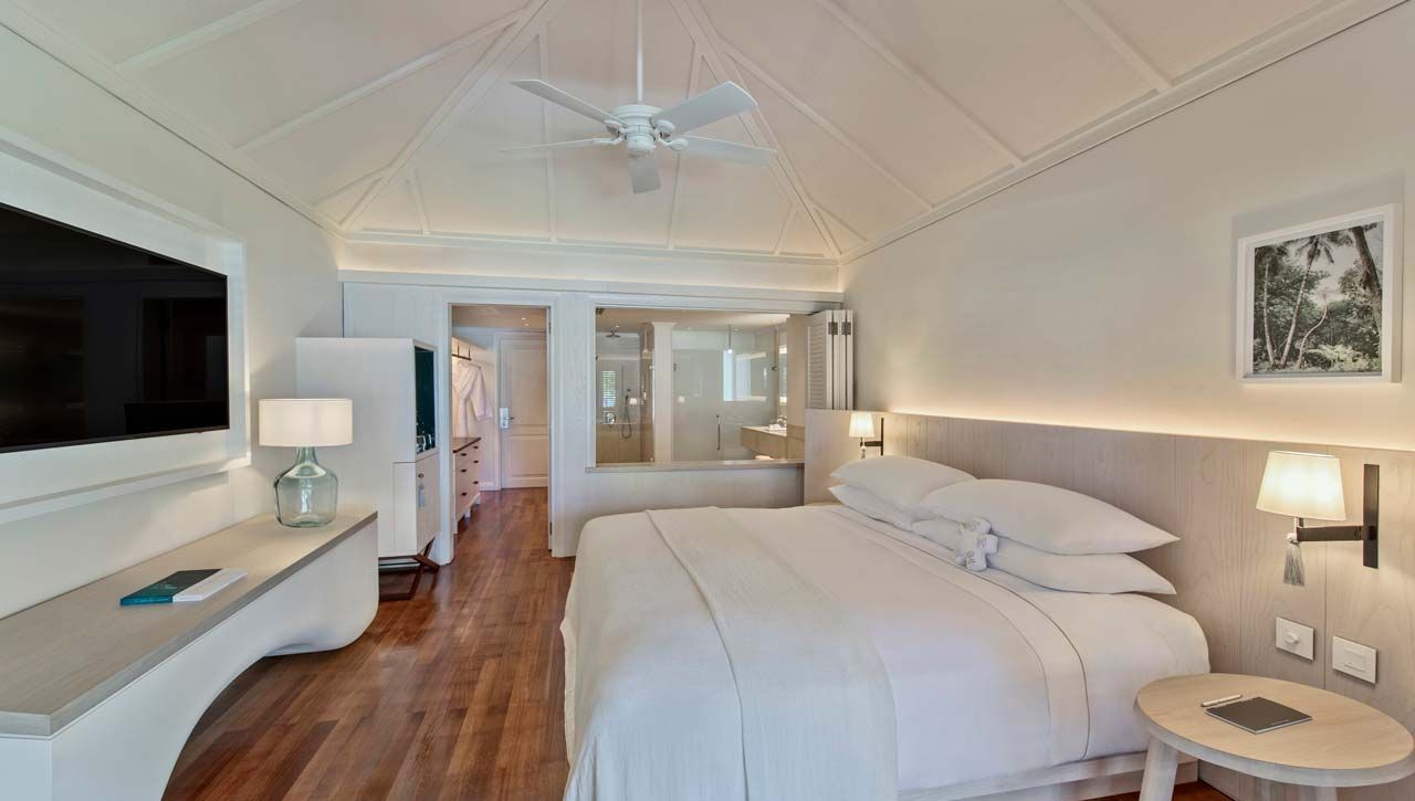 Resort nabízí ubytování, které dokonale odráží ducha Mauricia – prostorné pokoje a suity s terasami či balkonem směřujícím k oceánu, do tropických zahrad nebo k horám. Interiéry v jemných přírodních tónech kombinují dřevo, kámen a textilie z místních materiálů, díky čemuž působí útulně a vzdušně zároveň. Každý pokoj je vybaven moderním zázemím, luxusní koupelnou s vanou i sprchou, kávovarem, minibarem a doplňky, které zpříjemňují každý okamžik. Vyšší kategorie pokojů nabízejí přímý vstup na pláž, privátní bazén či rozšířené služby concierge – ideální pro hosty, kteří si přejí absolutní pohodlí a diskrétnost.